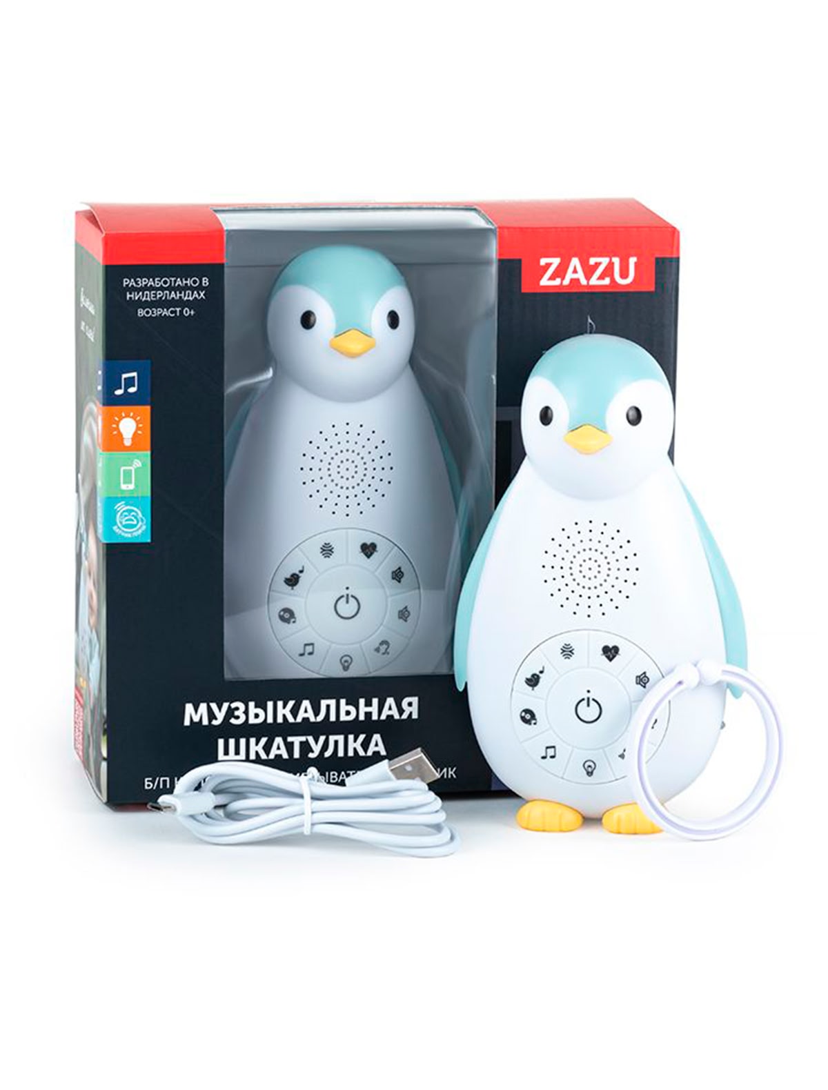 Беспроводная колонка + проигрыватель + ночник Голубой пингвин