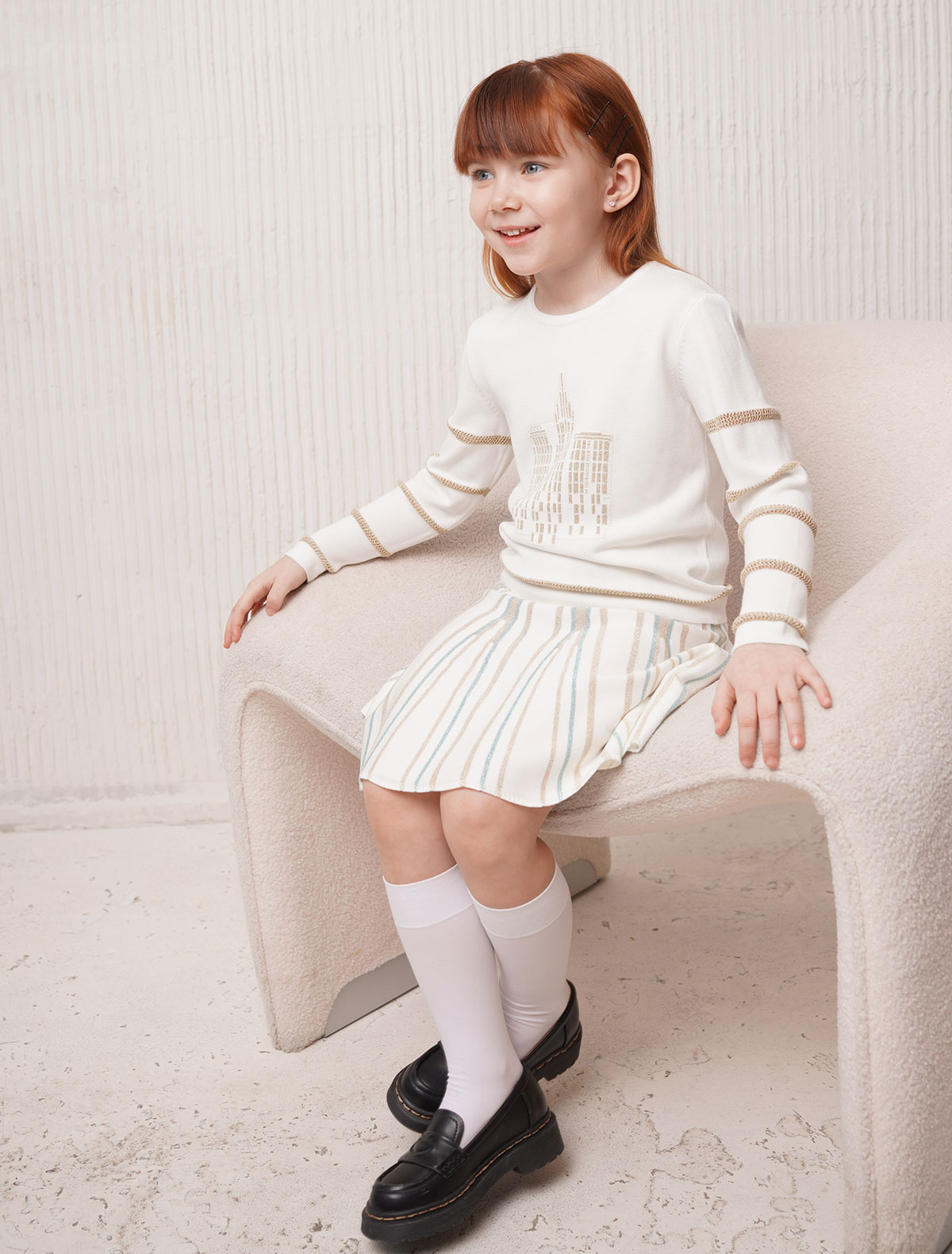 Для малышек и девочек-подростков дизайнеры Ralph Lauren, Milly Minis, Dolce&Gabbana и GUCCI подготовили изделия в нежных розовых тонах, выполненные из натурального хлопка, шерсти и вискозы. Мальчиков должны впечатлить джемперы от Burberry, Fendi и GIVENCHY. Натуральные материалы в них они хорошо согревают, а использование синтетического волокна добавляет им прочности и износостойкости.