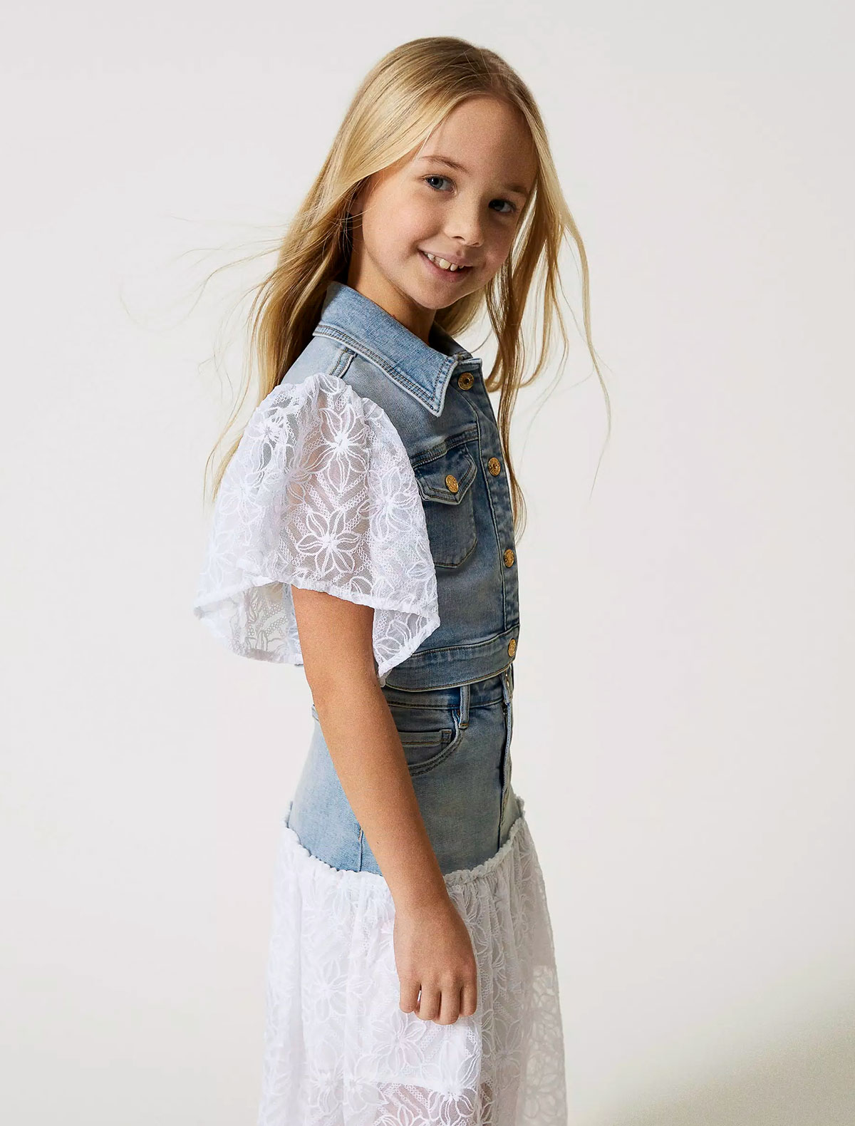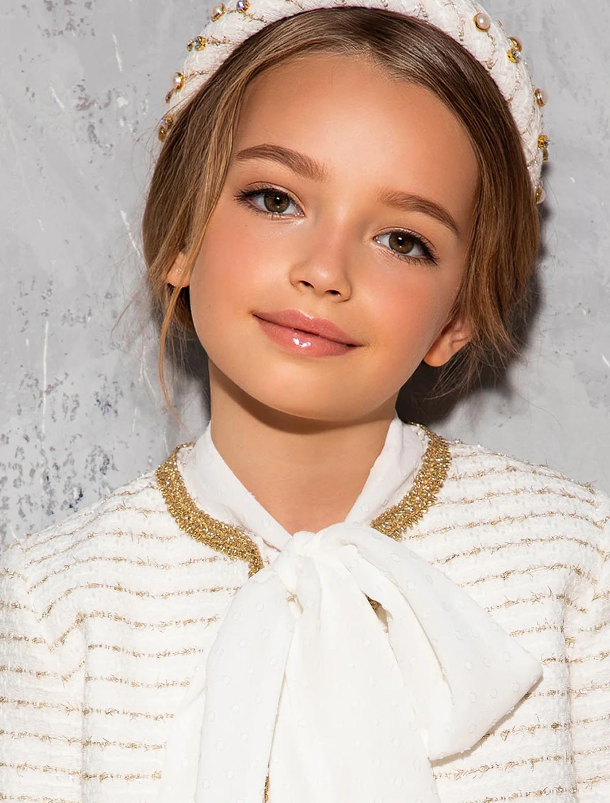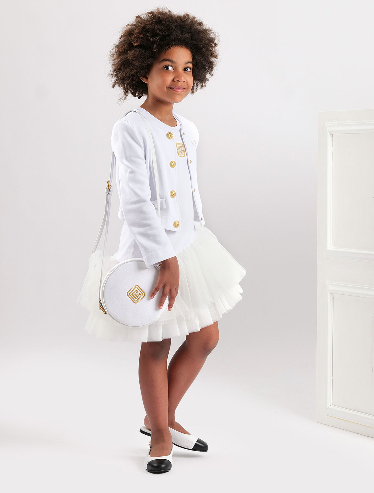 Белый жакет с золотистыми пуговицами