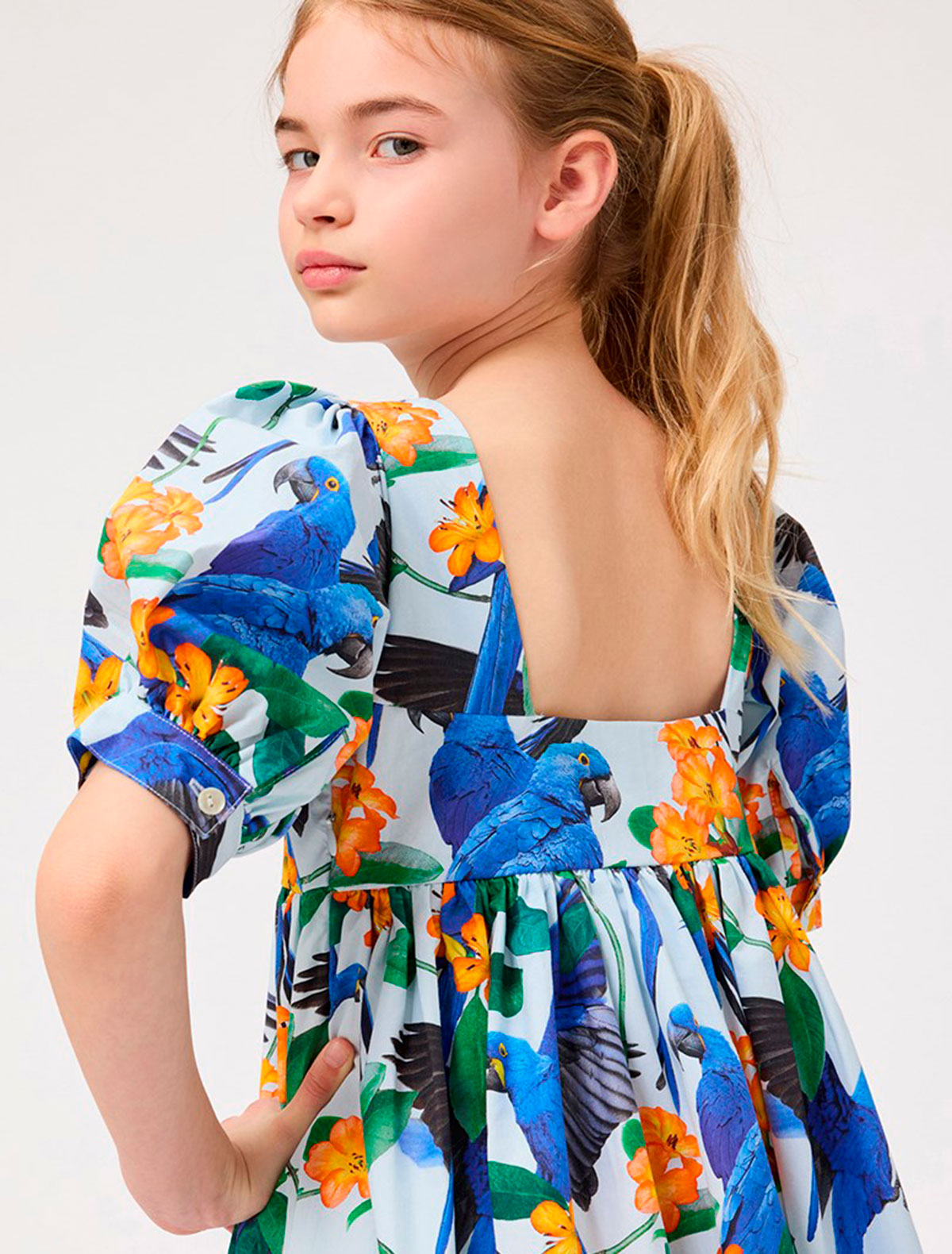 Платье с попугаями