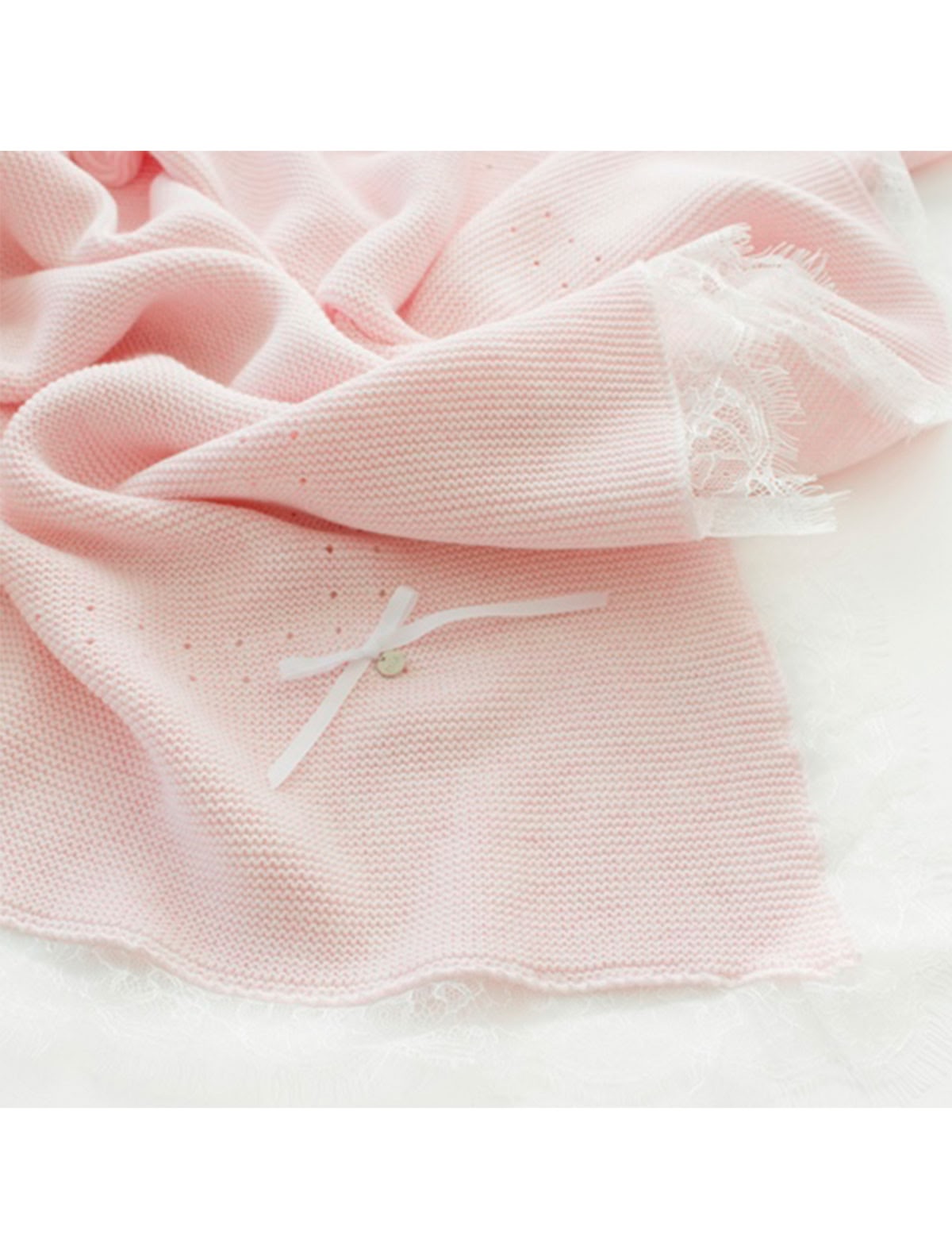 Хлопковый розовый ажурный плед