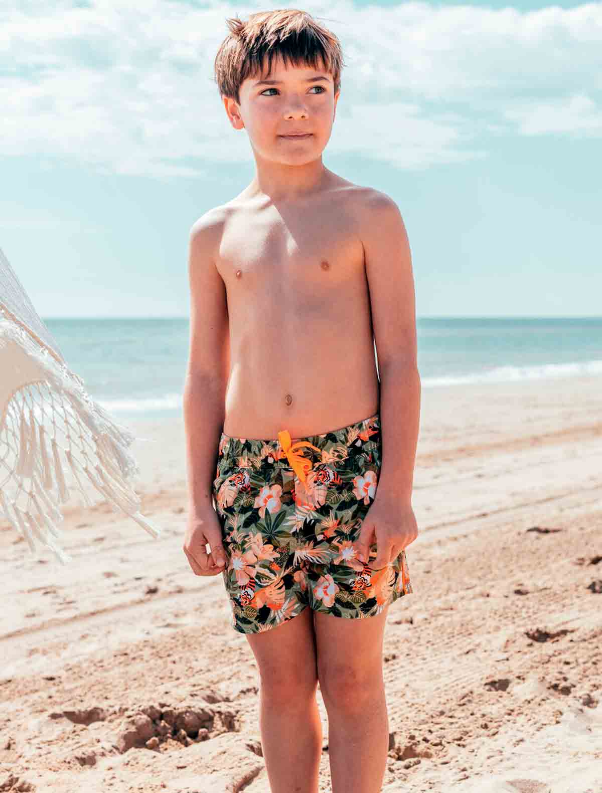 Шорты пляжные с тропическим принтом