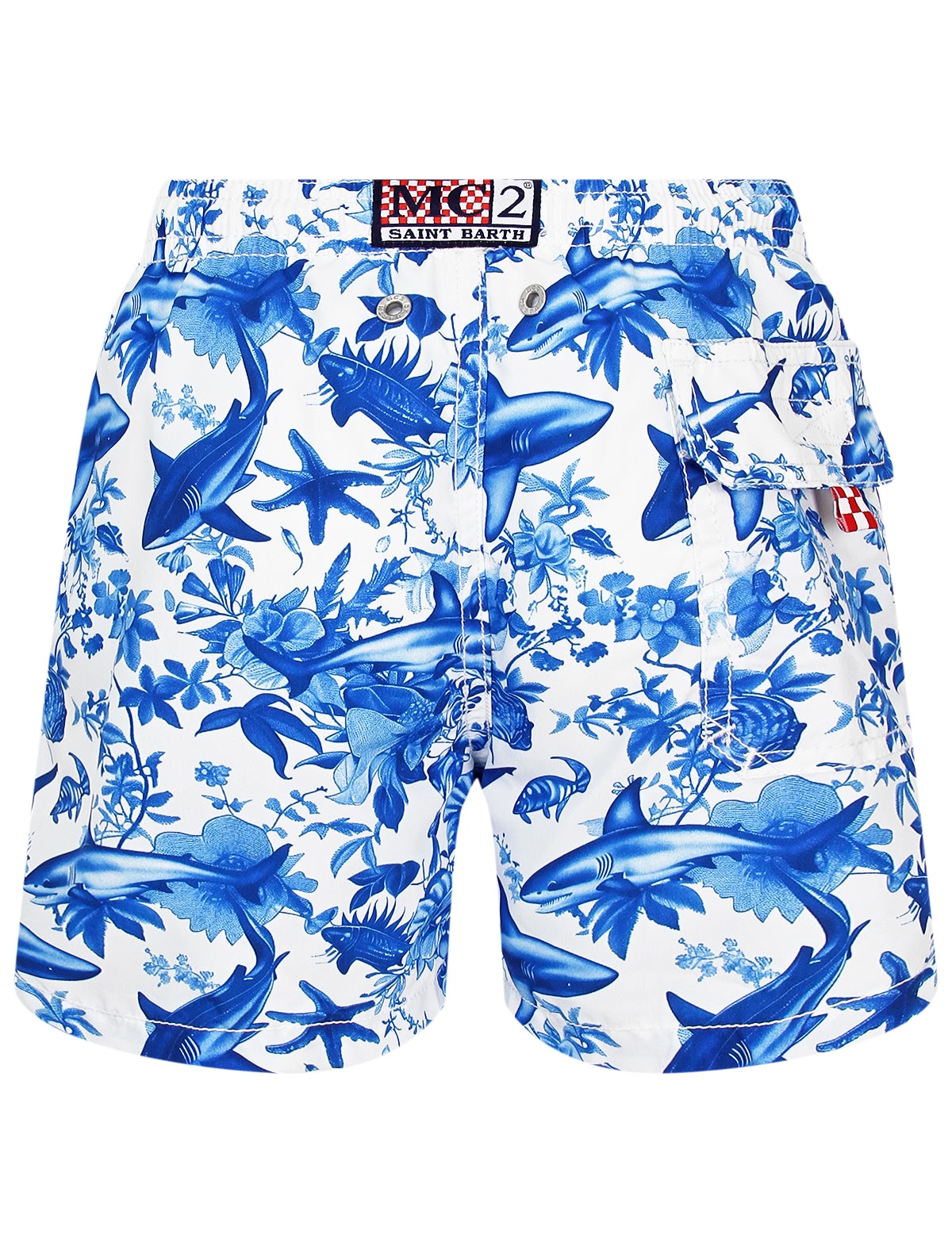 Синие пляжные шорты с акулами