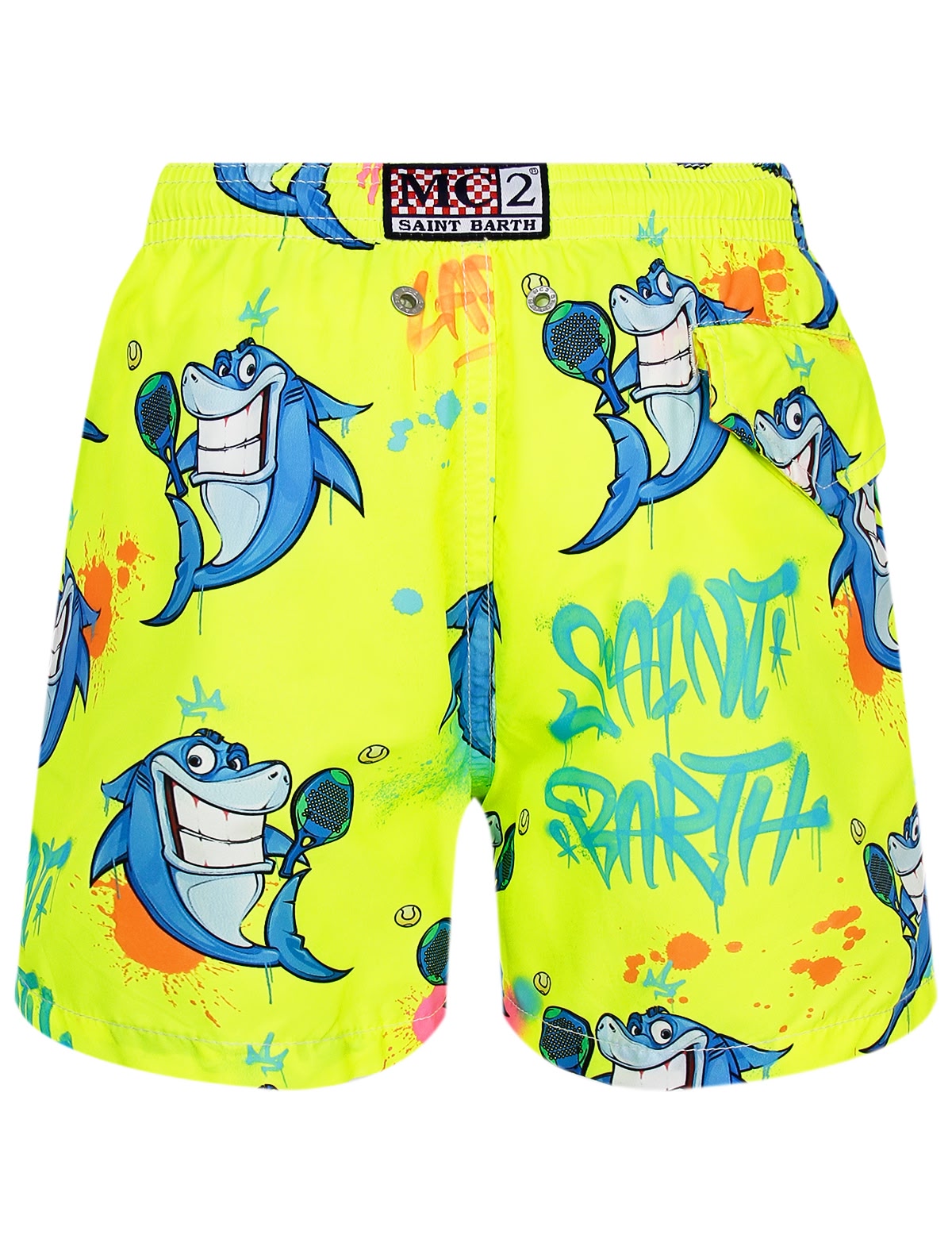 Жёлтые пляжные шорты с акулами