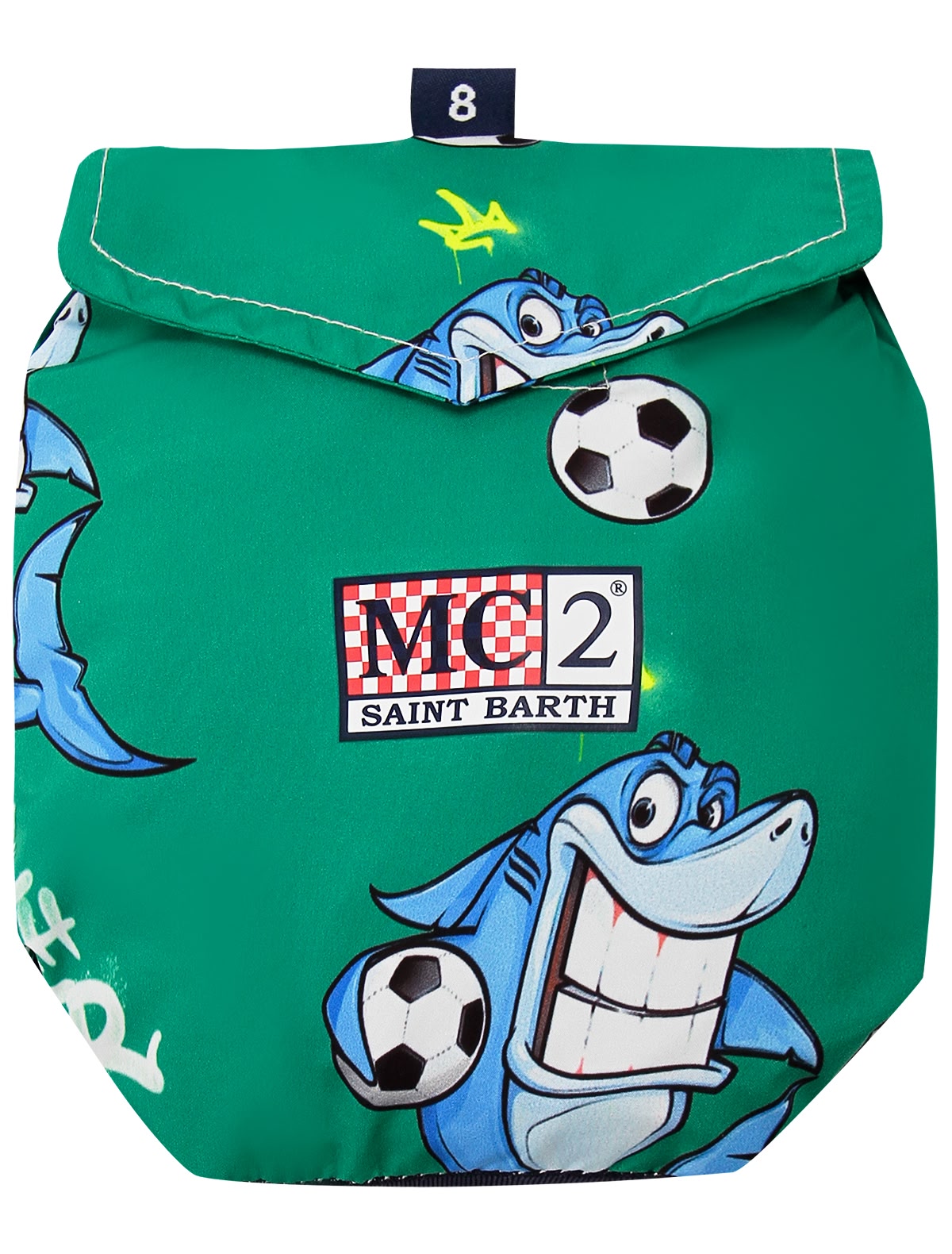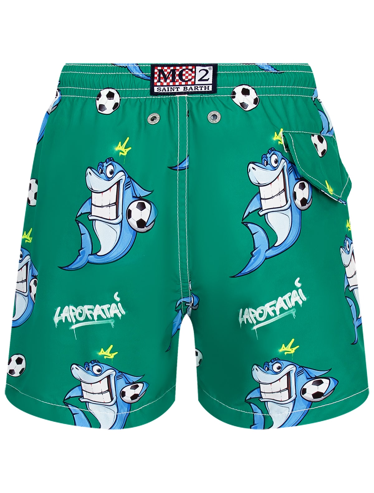 Зелёные пляжные шорты с акулами