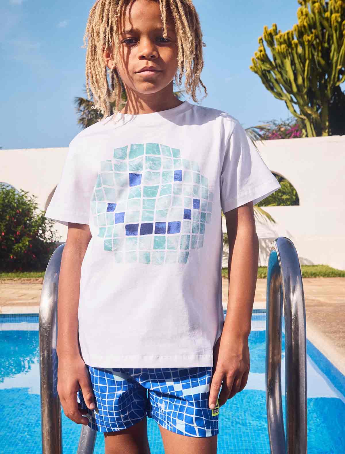 Голубые пляжные шорты с узором