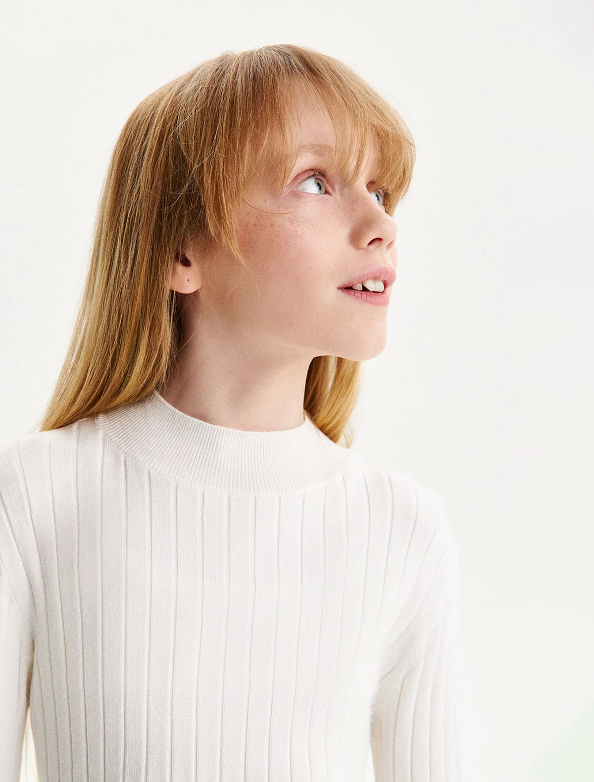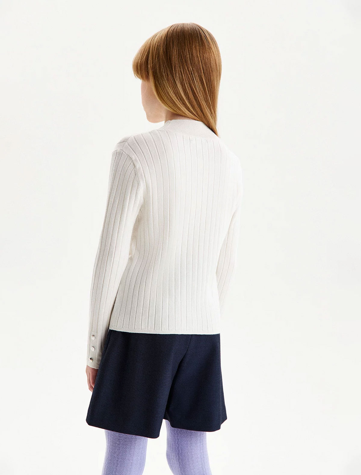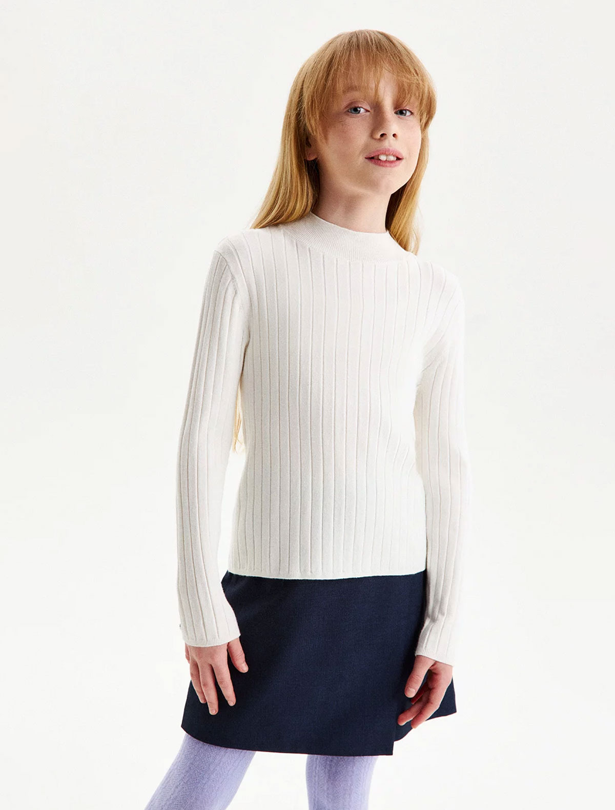 Белая водолазка в рубчик