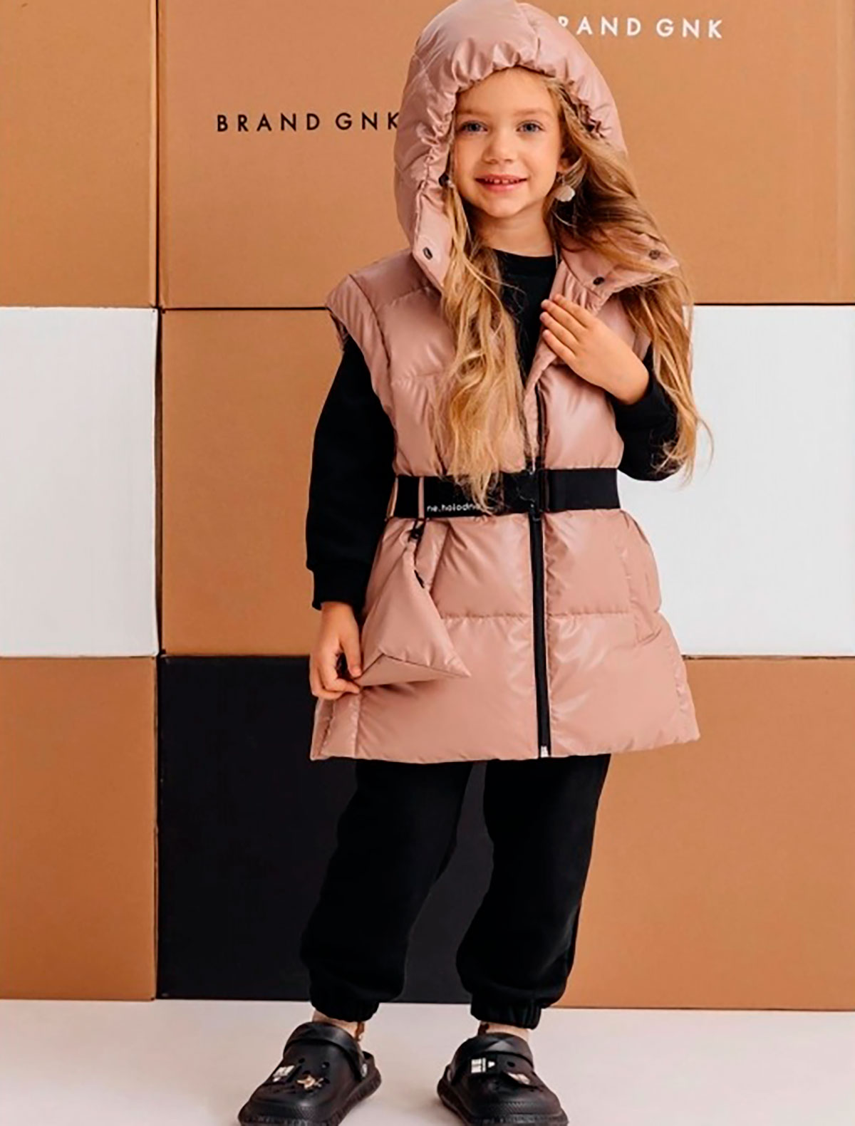 Утепленный жилет с трикотажным капюшоном