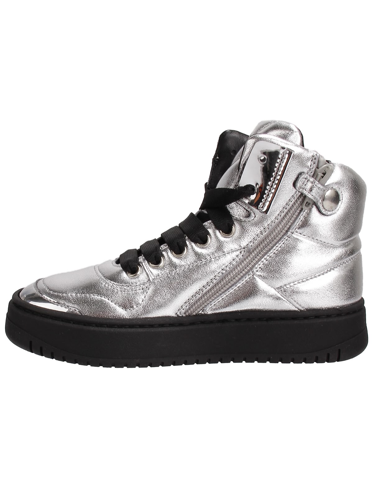 Серебристые кеды из кожи